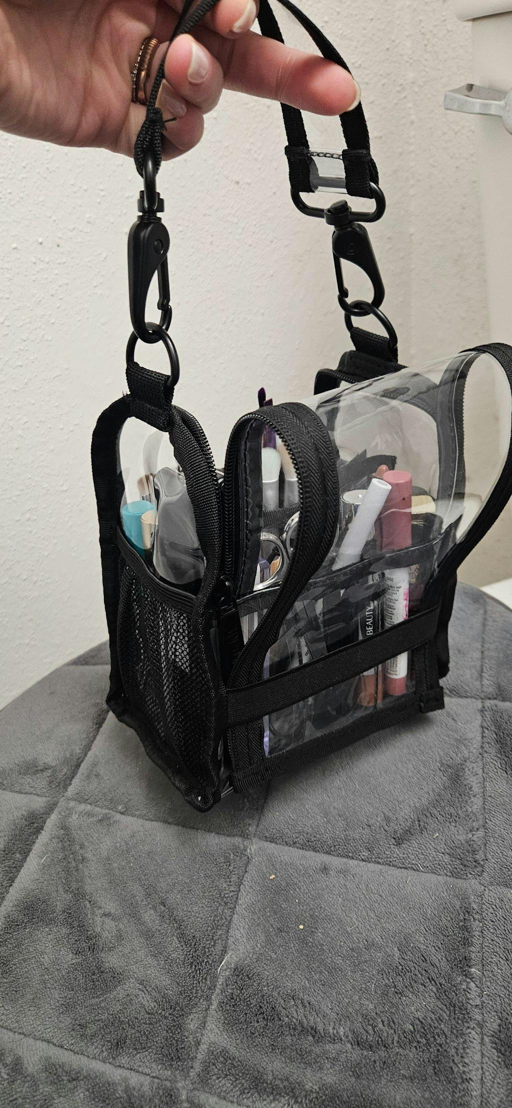 I absolutely love this little counter top bag! I love that I can stand all my products up and keep them organized and also that the bag is see through so I can easily find anything I’m looking for. Total winner. Highly recommend!